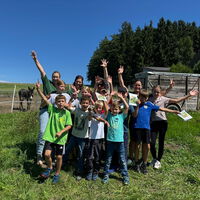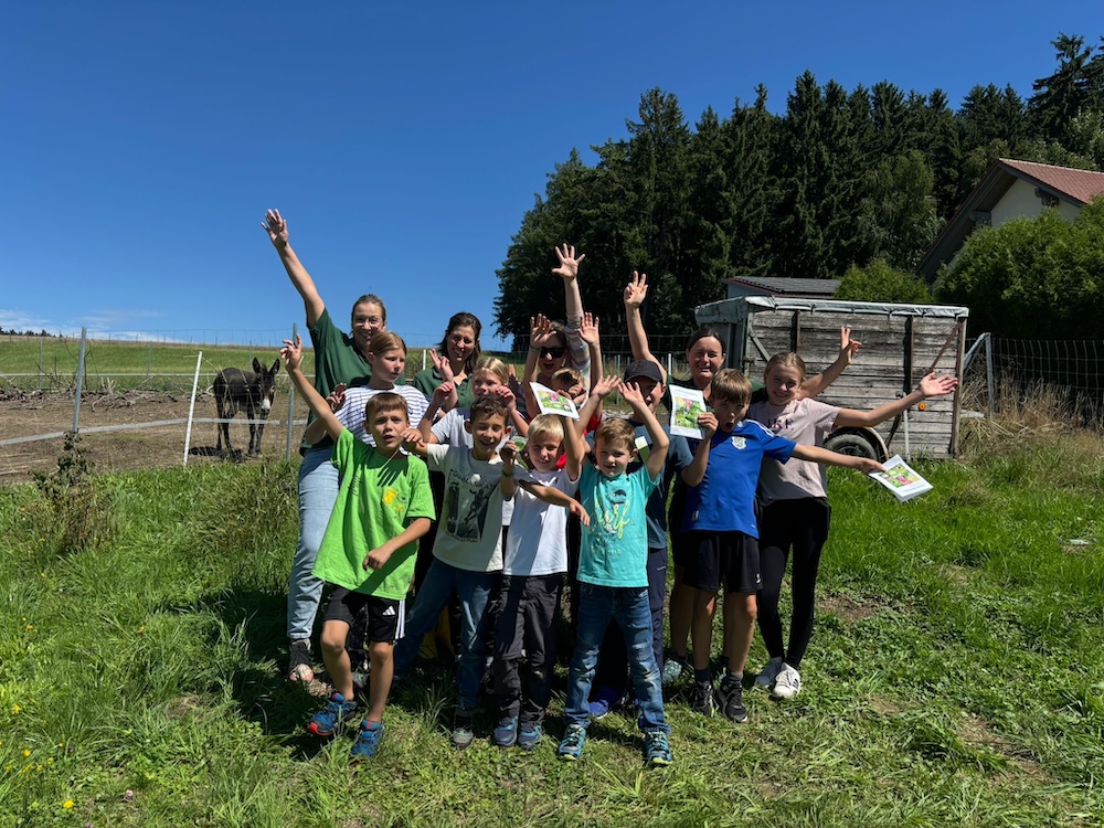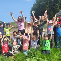 An zwei aufeinanderfolgenden Tagen durften bei bestem Sommerwetter jeweils zehn Kinder im Schulalter die Wiese und den Wald erkunden. Zum gegenseitigen Kennenlernen überlegte sich zu Beginn jedes Kind ein Kraut mit seinem Anfangsbuchstaben. Hierbei kamen zum Beispiel Basilikum, Lavendel, Arnika und Gundermann zusammen. Letzterer wurde dann sogleich im Garten gesucht und mit ein bisschen Hilfe von Daniela Riesinger gefunden.