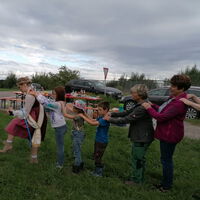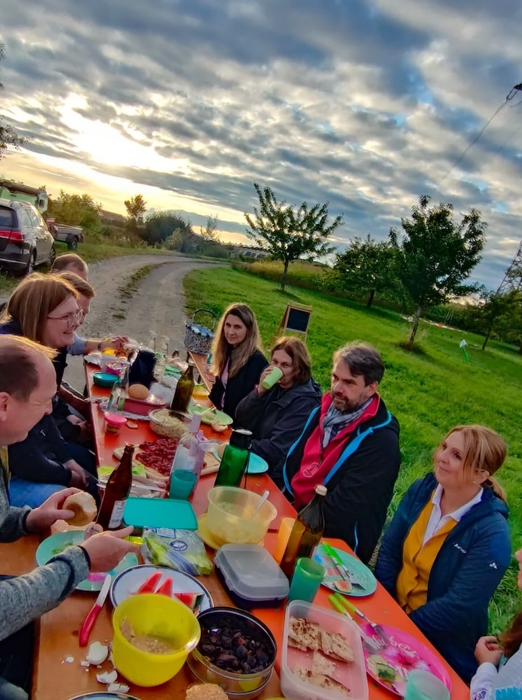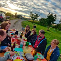 Bei trockenem Spätsommerwetter traf sich die Gruppe zu einem Fest mit Infos und Spielen auf die Streuobstwiese.