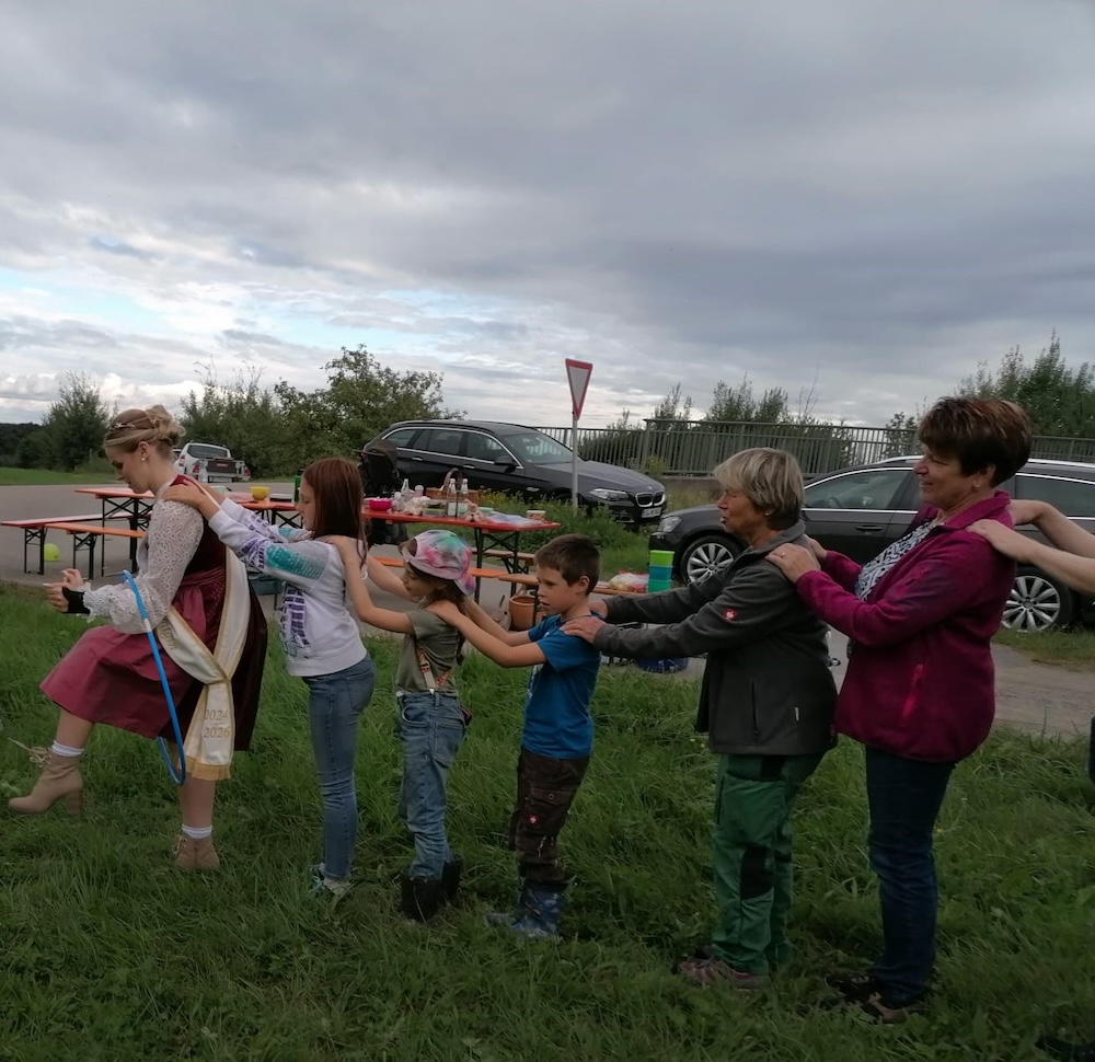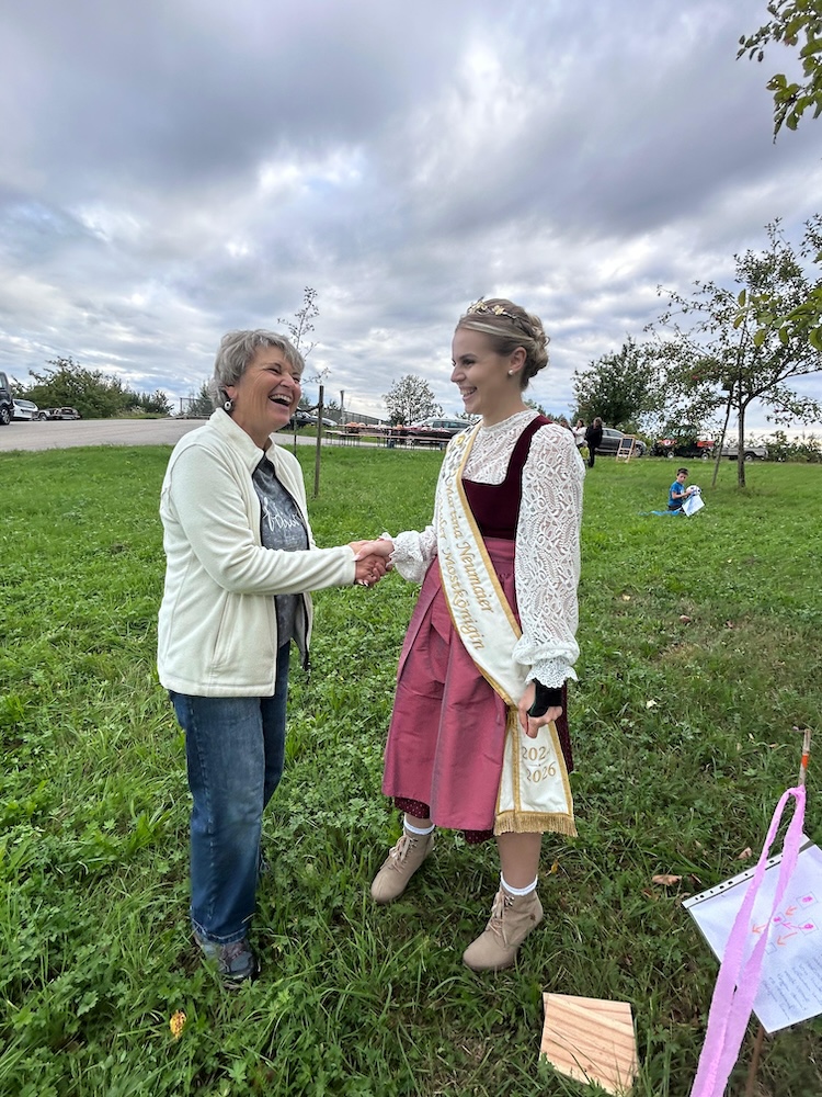 Zum diesjährigen Streuobstwiesenfest des Obst-und Gartenbauvereins konnte neben Kindern und Erwachsenen wieder königlicher Besuch begrüßt werden. Die aktuell amtierende Mostkönigin Martina Neumaier kam gerne der Einladung nach.