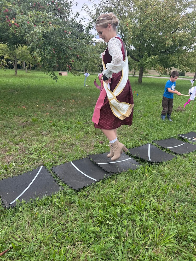 Für die Kinder hatten Alexandra Brunner und Maria Anzengruber-Schuder verschiedene Bewegungsspiele vorbereitet. Die sportliche Mostkönigin beteiligte sich gerne an den gestellten Aufgaben und hatte großen Spaß.