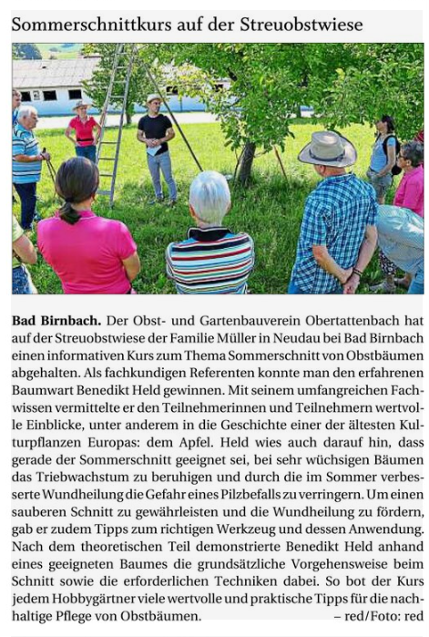 Sommerschnittkurs auf der Streuobstwiese
