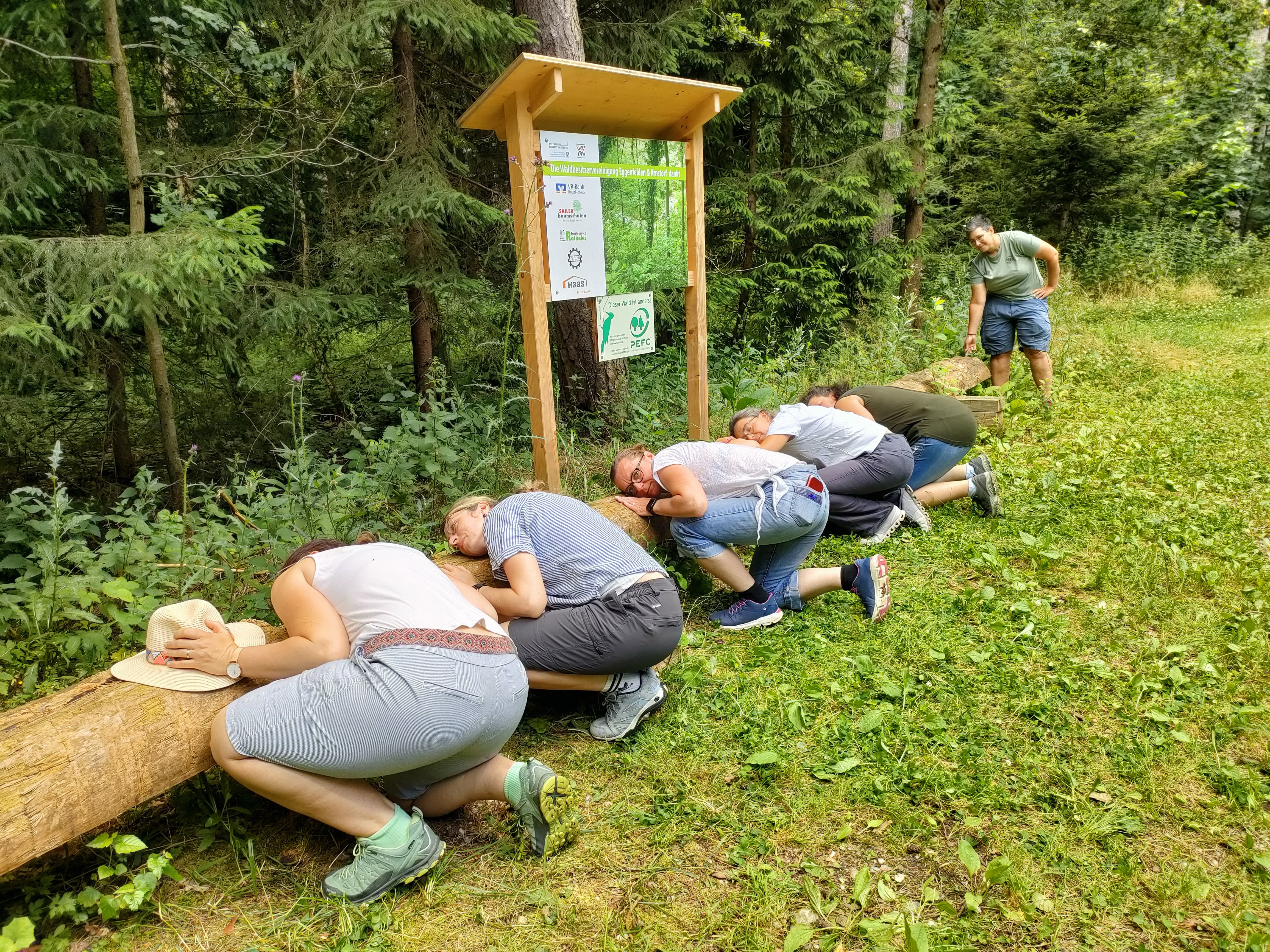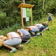 Eine Führung durch den Waldlehrpfad am Mertsee für Erwachsene. Waldpädagogin und Försterin Tina Winterer stellte neue Ideen zum Thema Umweltpädagogig vor. Ein reger Austausch fand unter den Jugendleitern bei einer Brotzeit im Wald statt.